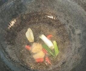 锅内放油,油热后入葱姜辣椒炒香。不吃辣的人这步去掉小米椒就好。