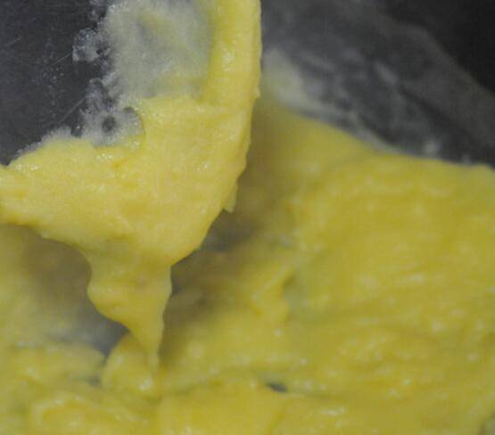 7.一边煮,一边不停地搅,直至将所有的疙瘩搅散,煮至面糊浓稠,当提起锅铲,面糊能挂旗了,就可以关火了。