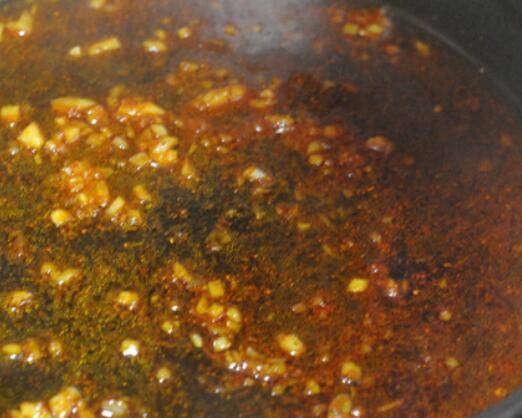 3.锅里加油,先将姜蒜末下锅煸炒出香味。