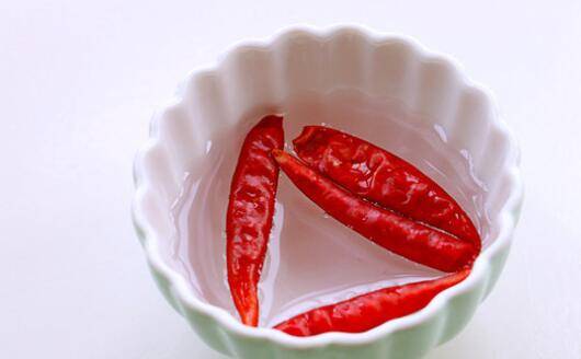 6、辣椒捞出后沥干水分,剪成小段,去掉籽,蒜切片,备好花椒。