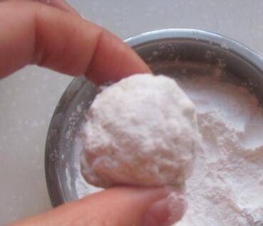 捏好的丸子放入干淀粉中,均匀的沾上一层干淀粉;