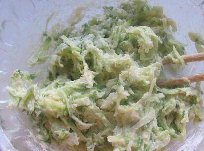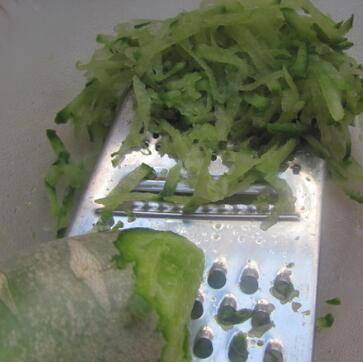 萝卜用擦丝器擦成丝,加入面粉、盐;