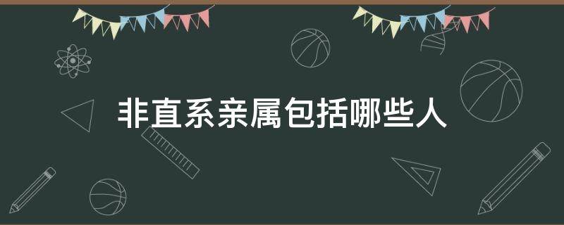 非直系亲属包括:配偶的亲人等一切直系亲属以外的亲戚。直系亲属,指和自己有直接血缘关系或婚姻关系的人,即直系血亲和直系姻亲,如指配偶、父母、子女、祖父母(外祖父母)、孙子女(外孙子女)。