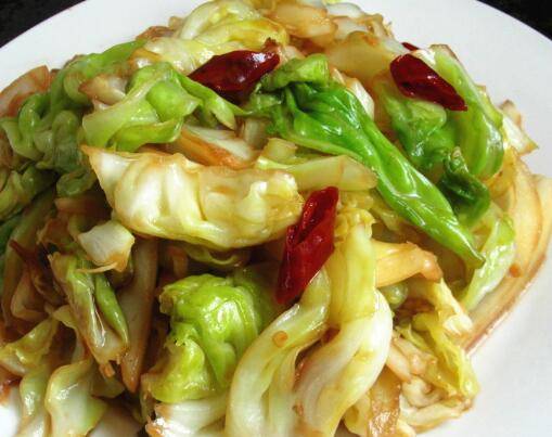 牛心包菜半棵、盐4克、生抽适量、辣椒1个、葱姜丝少许。
