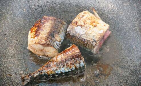 5、将切段后的青占鱼放进炒糖的锅里,翻炒几下。