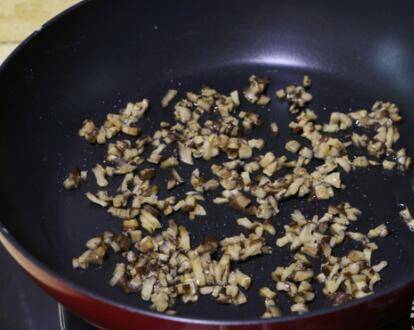 6、锅中倒入少许油,将香菇碎倒入锅中慢慢炒熟。
