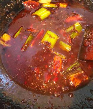 另起锅放油烧热,放入葱姜炒香。接下来:放2勺郫县豆瓣酱炒出红油,再放入4勺黄豆酱炒出酱香味。加适量清水烧开(一会倒入砂锅能没过牛骨的量)。
