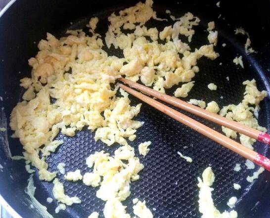 韭菜洗净切碎,和鸡蛋放在一起拌匀,用鸡蛋中的油包裹一下,可以防止韭菜出汤,也不用另外放油。加入姜末香油,搅拌均匀。