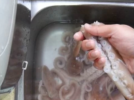 工具/材料:八爪鱼、盐、醋。