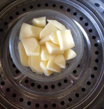 1、准备一个苹果,切成方便打泥的大小。