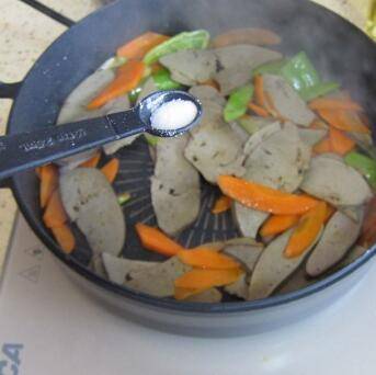 羊肝吸满汤汁加盐翻炒均匀即可。