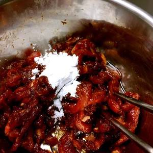 3、加入糖、姜粉,用手抓匀。