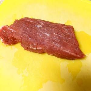 1、准备材料:牛里脊一块半斤、白糖一小勺、姜粉适量、酱油一大勺、土豆淀粉一小勺、植物油一大勺、蒜苗适量。