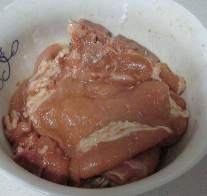 大排放入碗中加入4克盐,料酒拌匀腌制1小时。