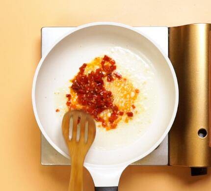 倒入食用油,放入剁椒,翻炒出红油。