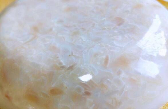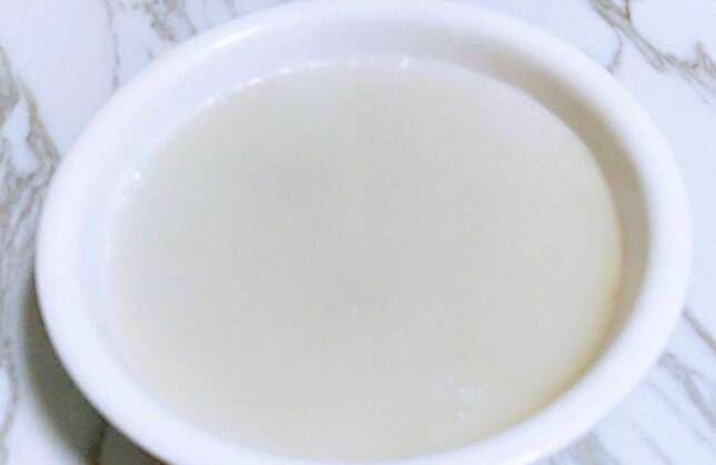 5、熬好的肉皮冻放入器具中,待彻底冷凝固。