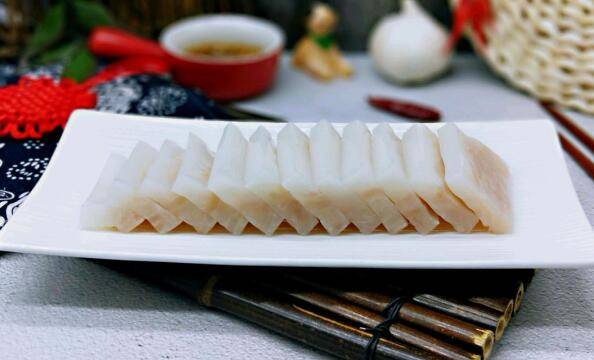 6、凝固的肉皮冻,倒扣出来。切片、切块都可以,根据个人喜欢。