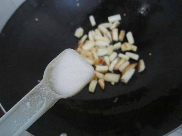 8、加入盐翻炒均匀。