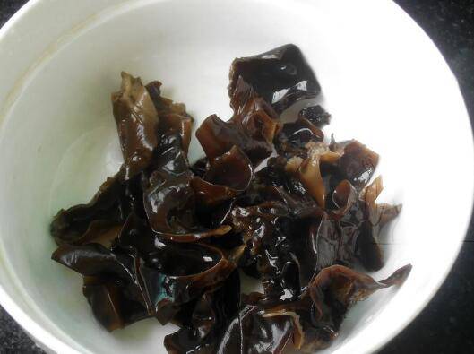 6、倒入木耳和胡萝卜片翻炒一会儿。