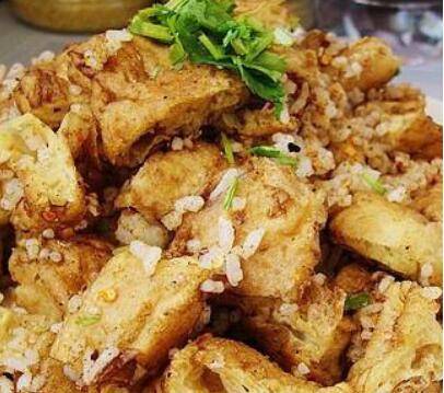 材料:米饭1碗,油饼适量,食盐适量,孜然适量,辣椒粉适量。