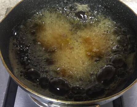 油锅放油烧到五成热,开小火,下饼炸熟。