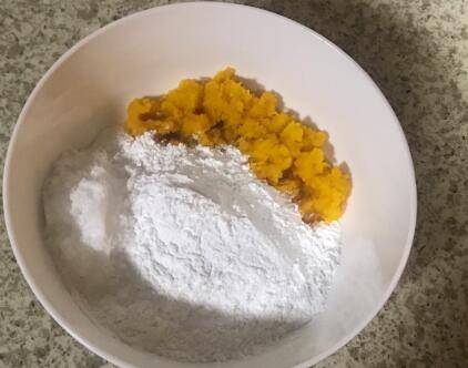 南瓜泥100克、糯米粉120克、绵白糖15克、鸡蛋1个、面包糠半碗。