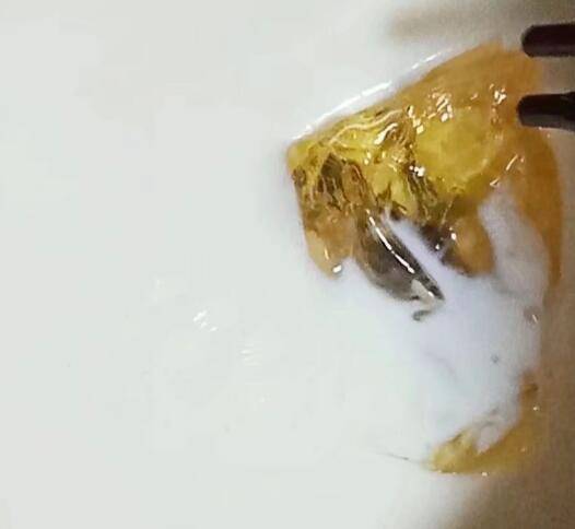 3、吉利丁片剪小块,用冰水泡软。