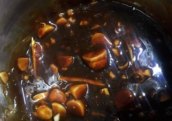 9、放入预热好的烤箱里,中层上下火180度烤四十分钟左右。中途取出翻面,可以再刷一层酱汁。