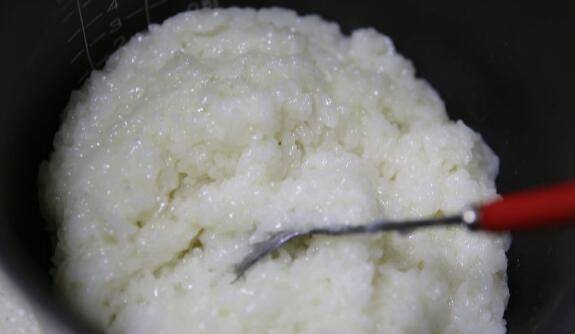 4、泡好的糯米加入适量水用电饭煲蒸成糯米饭。