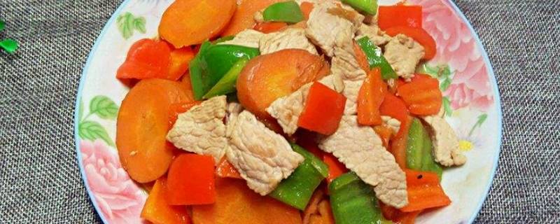 用料:胡萝卜3根、肉150克、大葱1根、青椒3个、朝天椒2个、青蒜2根、老抽半勺、生抽1勺、盐适量。