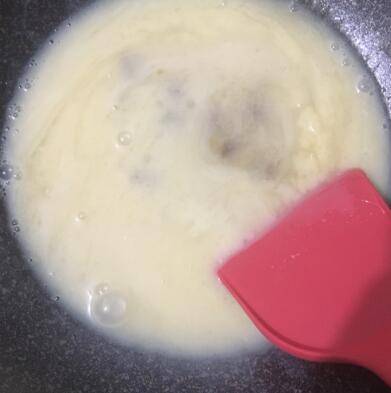 熬至浓稠状态,加入黄油融化后,再加入咖啡粉继续熬制。