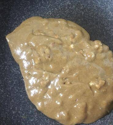 熬到抱团状态以后,加入适量干果翻拌均匀即可出锅。