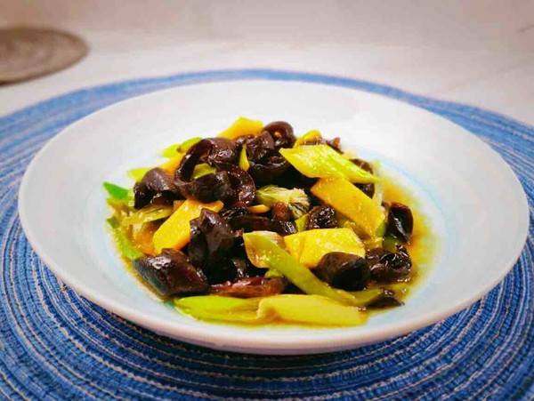 5、放入海参和大葱翻炒,再加入高汤、生抽、料酒、盐、鸡精,焖煮片刻。