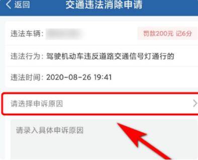 5、然后在申诉界面,点击“请选择申述原因”,点选要申诉的原因。