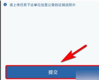 6、最后上传任务下达单位加盖公章的证明函,点击“提交”等待审核通过即可。