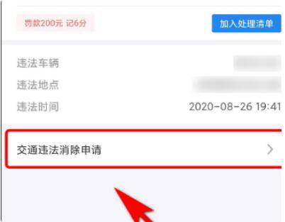 4、然后在打开的页面中,点击“交通违法消除申请”。