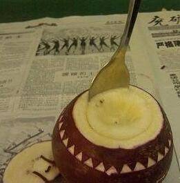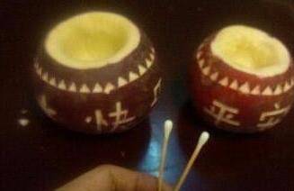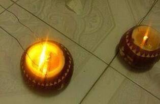 用勺子将萝卜的心掏一个圆形的洞,洞的大小,决定了灯笼可以存放油的容量。