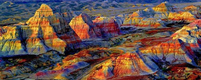 青海省西蒙古藏族自治州大柴旦。雅丹地貌是一种典型的风蚀地貌,又称风蚀垄槽,或者称为风蚀脊,在极干旱地区的一些干涸的湖底,因干缩裂开,风沿着裂隙吹蚀,裂隙愈来愈大,使原来平坦的地面发育成许多不规则的背鳍形垄脊和宽浅沟槽,这种支离破碎的地面成为雅丹地貌,有些地貌外观如同古城堡,俗称魔鬼城。“雅丹”原是我国维吾尔族语,意为陡峭的土丘。雅丹地貌以罗布泊西北楼兰附近最典型。世界各地的不同荒漠,包括突厥斯坦荒漠和莫哈韦沙漠在内,都有雅丹地形。雅丹世称魔鬼城,是最全面地质资料宝库。在繁荣的丝绸古道上,它是一个最大的天然路标。塔里木盆地的罗布泊区域,有些雅丹地形的沟深度可达十余米,长度由数十米到数百米不等,走向与主风向一致,沟槽内常有沙子堆积。在垅脊顶部常有白色盐壳,又称白龙堆。