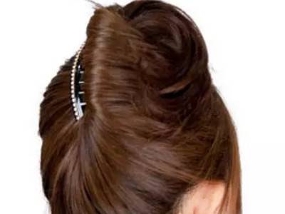 2、用梳子高高梳整齐,马尾顺时针扭成一团。