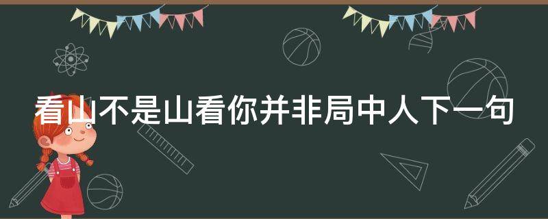 最佳答案看山不是山看你并非局中人下一句是看花不是花看你不在此处。这句话的意思是事物本身与我们所看到的不一定相同,因为你观察的角度不同,所得到的结论也会不同。句子是语言运用的基本单位,它由词、词组构成,能表达一个完整的意思,如告诉别人一件事情、提出一个问题、表示要求或者制止、表示某种感...