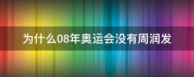 08年奥运会没有周润发是因为周润发那段时间在拍他的新作品,并且他也不是奥运会的代表人物。周润发是华语影视男演员、摄影家、国家一级演员。1988年,凭借影片《龙虎风云》获得第7届香港电影金像奖最佳男主角奖;1990年,凭借电影《阿郎的故事》获得第9届香港电影金像奖最佳男主角奖;1991年,主演电影《纵横四海》;1995年,主演动作片《和平饭店》;1998年,主演的电影《替身杀手》上映。