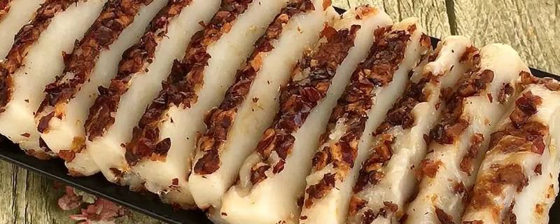 年糕是中国汉族的传统食物,属于农历新年的应时食品。年糕是用大米或糯米,煮成饭用打制或水磨成粉后压制而成的糕,在春节,我国很多地区都讲究吃年糕。年糕有红、黄、白三色,口感软糯香甜、富有弹性。