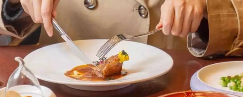 3、在使用刀叉的时候,刀叉要放在大拇指和中指之间,食指用力即可,切起来自己方便不费力。