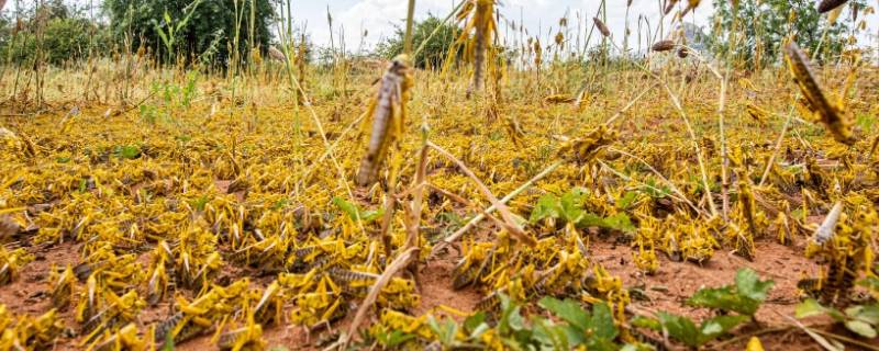 4、虫密过大:当蝗群处于一定密度的时候,蝗虫会排列成行,开始朝同一个方向前进。蝗虫在其生活史早期是孤立的、没有翅的若虫,它们倾向于相互避开。但是如果资源变得缺乏,它们就被迫相互影响。