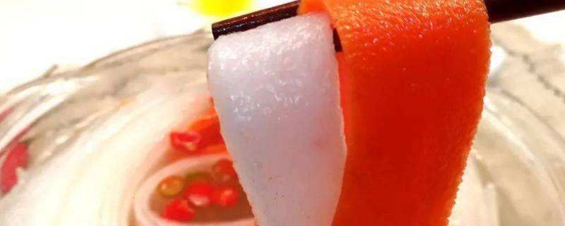2、萝卜用刮刀刮成薄片放碗里,小米椒切碎。