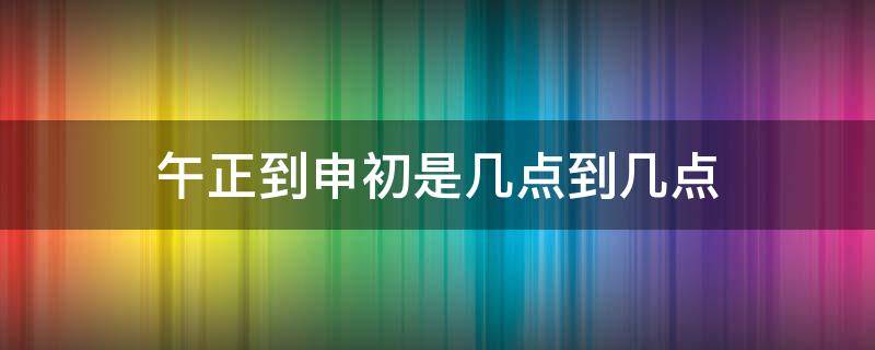 午正到申初是中午12点到下午3点。午正:正午十二时。申初:即申时初刻,申时为下午三时正到五时正,申初即为下午三时正。午正和申初确定时间是正午十二时到下午三时正之间。午正示例:《旧五代史·晋书·马重绩传》刻漏之法,以中星考昼夜为一百刻,八刻六十分刻之二十为一时,时以四刻十分为正,此自古所用也。