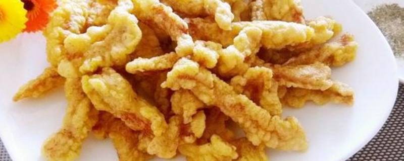 6、把沾有面粉的肉片放鸡蛋液里滚一圈。再把裹一层蛋液的肉片放入面包糠中,裹一层。