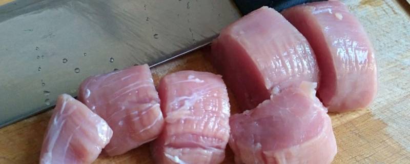 2、梅条肉洗净剔除筋膜,斜刀切薄片。