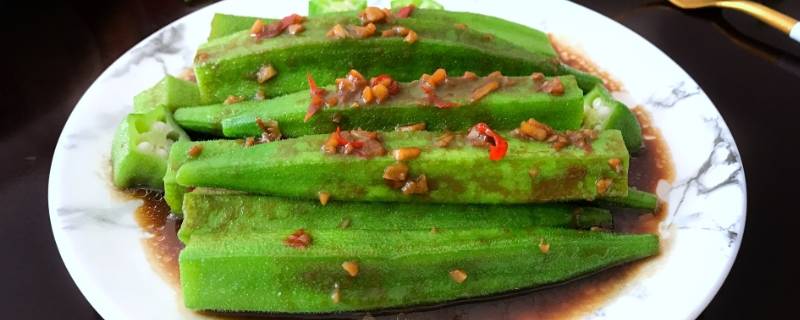 一、凉拌秋葵:准备食材:黄秋葵300克、蒜瓣4个、干辣椒2个、蚝油1.5勺、生抽0.5勺、香醋1勺、砂糖0.5勺、食盐少许、食用油适量。