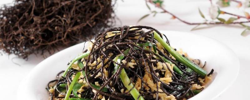 1、干核桃花洗净、发涨、煮熟,过冷水备用。